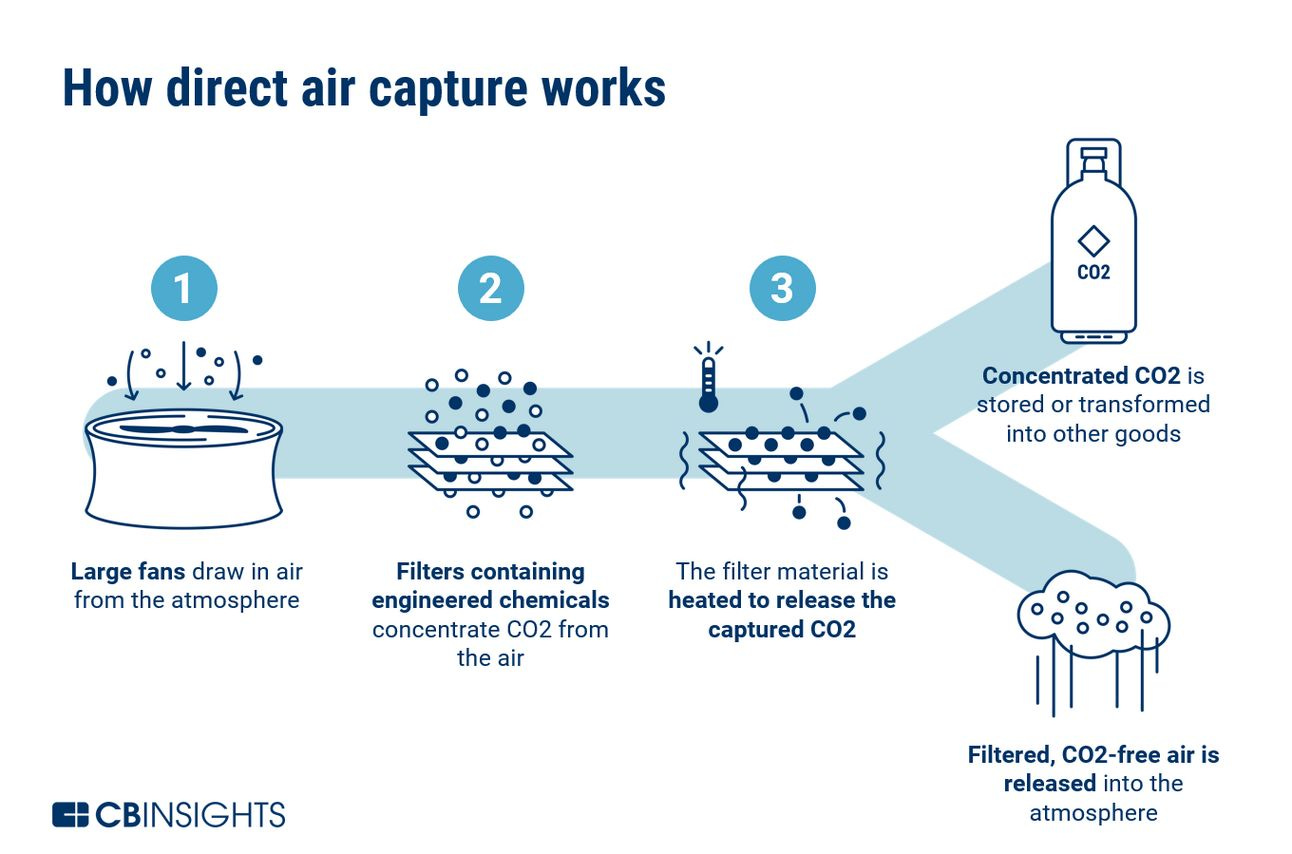 There is also the related concept of Carbon Capture, which refers to efforts to minimize CO2 emissions at the point that they’re produced, i.e. as part of combustion engines used to power industrial processes like manufacturing.