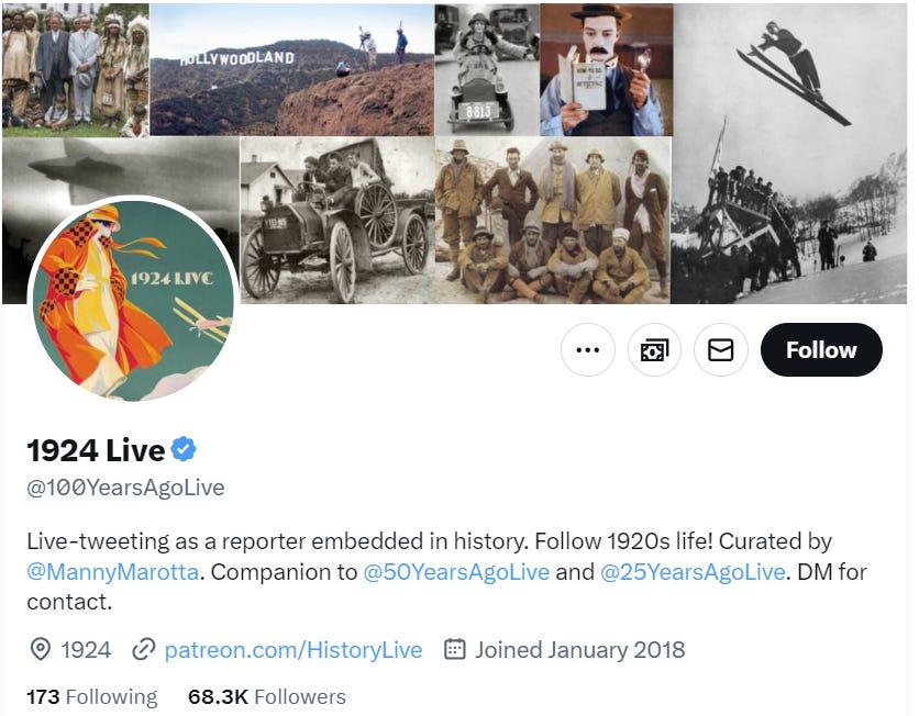 So, I started @100YearsAgoLive as a means of giving people the ability to follow all of history in real-time, alongside their regular daily news.